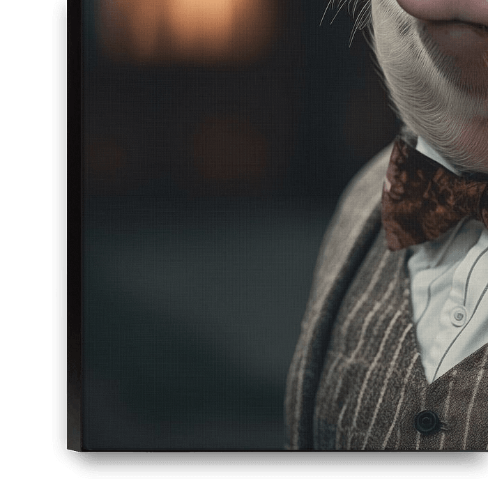 Sur la photo, on peut voir un puissant cochon vêtu d'un élégant costume et d'un chapeau, habillé comme le parrain. Le cochon a une expression confiante et se tient fièrement. L'image est de style photo réelle, avec une haute résolution et de nombreux détails, ainsi qu'une texture cinématographique. L'éclairage a un effet…