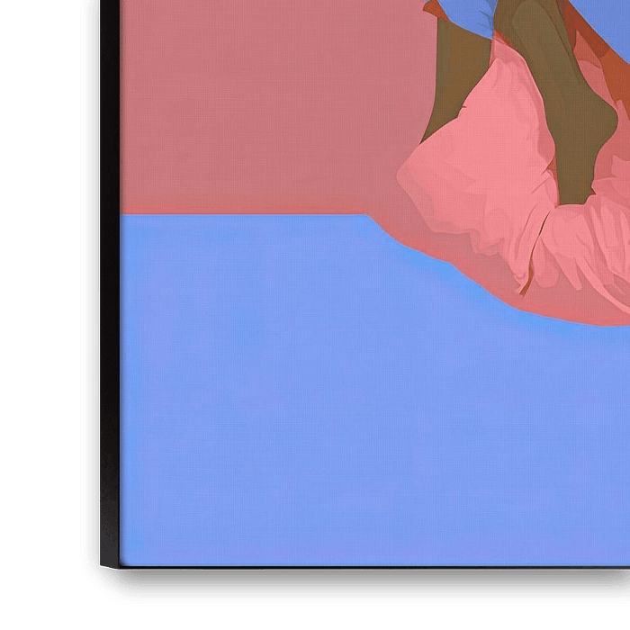 Femme allongée sur un lit dans une palette de couleurs abstraites