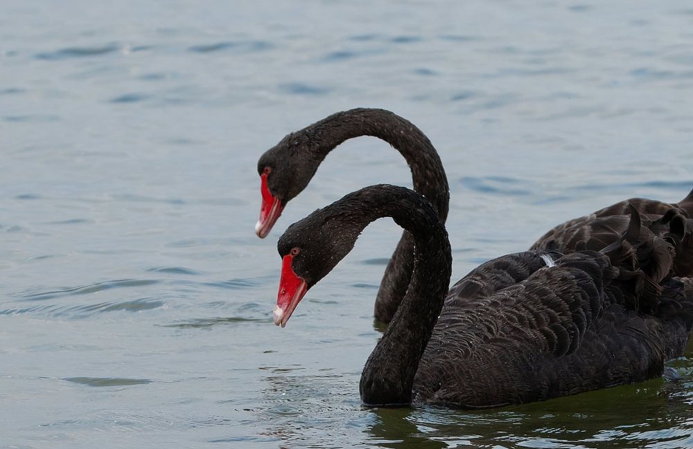 Le cygne noir est presque entièrement noir avec seulement des parties blanches aux mains.