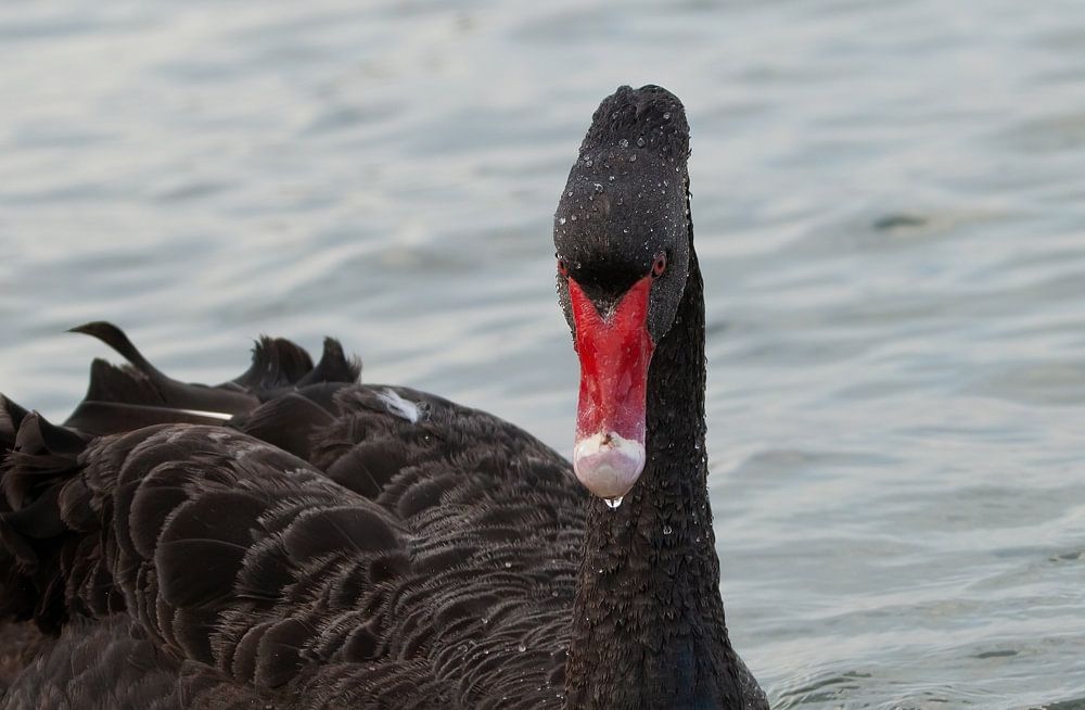 Le cygne noir est presque entièrement noir avec seulement des parties blanches aux mains.