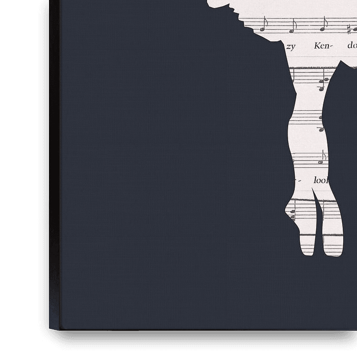 Le Dancer est un imprimé minimaliste avec une touche romantique. Dans cet imprimé sur fond bleu foncé, une élégante ballerine joue le rôle principal. La silhouette de la ballerine comporte des partitions de musique.