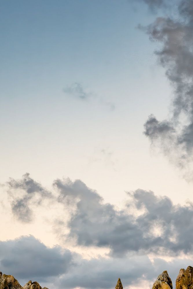 De hautes formations calcaires s'élèvent de façon spectaculaire dans un paysage désertique sablonneux sous un ciel clair, la lune étant visible au-dessus. Des nuages ondulants ajoutent un contraste à l'atmosphère sereine, renforçant l'impression d'ailleurs de la scène.