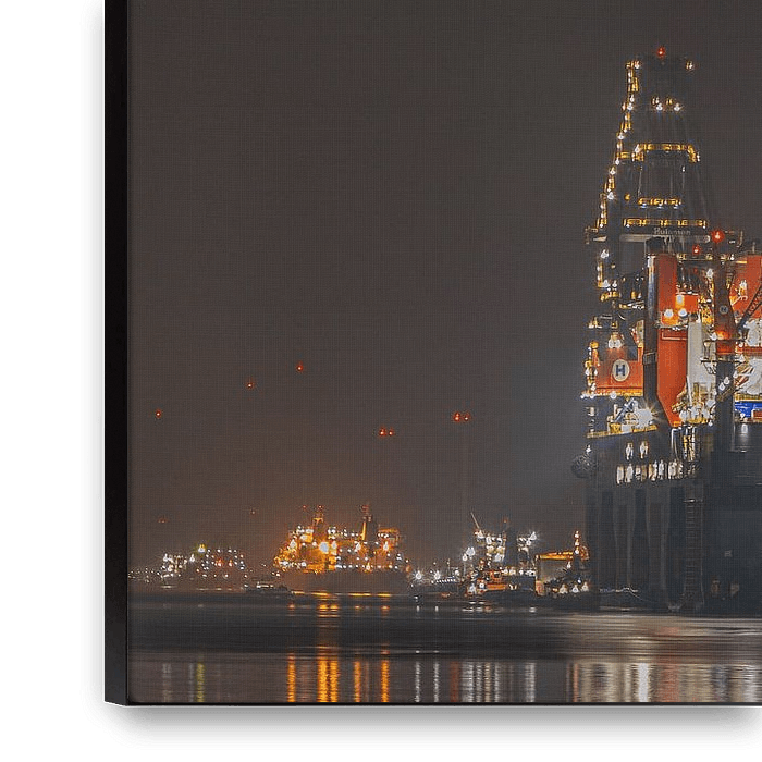 Un portrait majestueux de puissance pure : le SSCV Sleipnir dans toute sa splendeur pendant la nuit. Ce navire, la fierté de Heerema, est connu pour être le navire-grue le plus puissant au monde. La photo capture l'énorme taille des grues et la technologie complexe qui rend ce navire si unique.