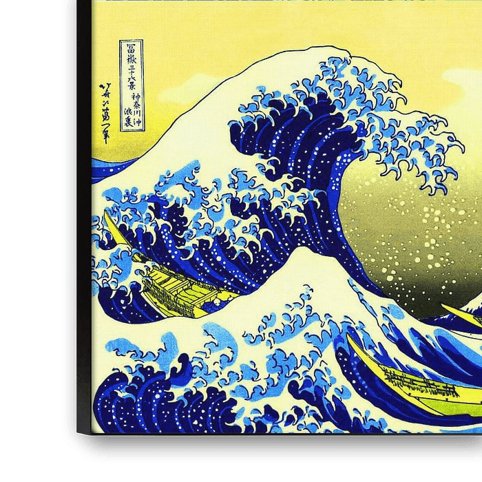 L'œuvre d'art montre plusieurs bateaux essayant de naviguer sur une mer de vagues géantes. La plus grande vague menace d'écraser les rameurs. Dans cette vague, on peut voir un monstre avec des griffes et il représente la puissance de la nature mais aussi celle des rameurs. Cette vague devrait peut-être représenter un tsunami, mais vu sa forme, elle ne l'est pas. La zone autour de Kanagawa (sur la baie de Tokyo) a été détruite par un tel tsunami au 15ème siècle.