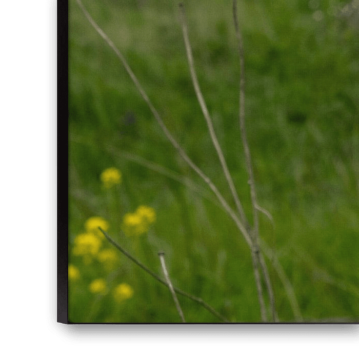 J'ai cherché à capturer la stratification du paysage et le sentiment d'un voyage indéfini. La distance vague et floue souligne la profondeur et invite le spectateur à suivre le chemin. Les fleurs jaunes et blanches offrent une contrepartie délicate à la lumière grise et froide et au métal rouillé.