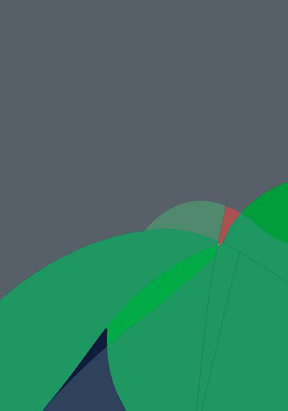 Ce dessin utilise des blocs vert émeraude superposés pour évoquer les collines fantastiques d'Oz. Des segments courbes et nets contrastent avec un ciel gris foncé, tandis qu'un minuscule accent rouge sert de phare dans le voyage, offrant un sentiment d'aventure illustrative moderne.