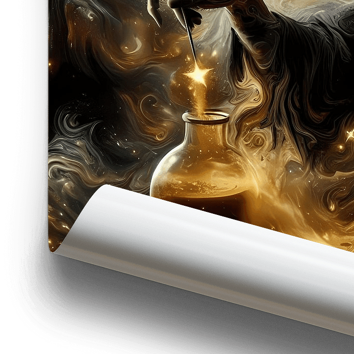 Le tableau d'art "Le magicien noir" transporte le spectateur dans un monde mystique plein de mystères et de magie. Le magicien se tient majestueusement dans une cape d'un noir profond, ornée d'étoiles scintillantes et de symboles mystérieux. Son visage est encadré d'une longue barbe ombrageuse et ses yeux dégagent une force hypnotique.…