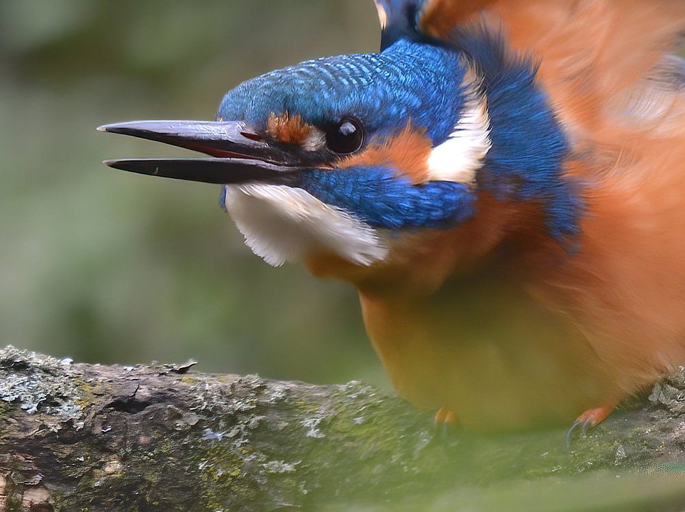 Cet oiseau faisait un beau nettoyage en pleine nature devant son nid. Le martin-pêcheur prend presque toujours cette posture dès qu'il a fini de nettoyer les plumes. Ce moment prend environ une seconde !