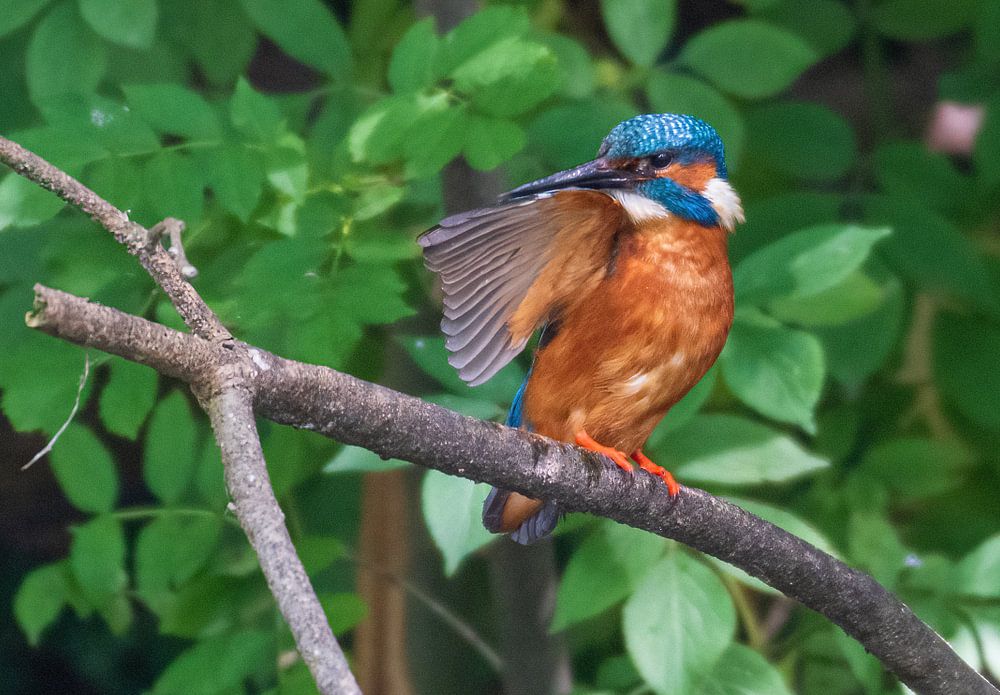 Quand un couple de martins-pêcheurs a un nid, ils s'envolent avec de petits poissons. Ils s'assoient souvent sur une brindille au-dessus de l'eau pour pêcher. Quel bel oiseau.