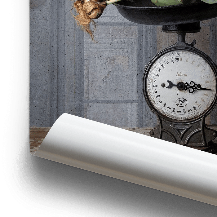 Les tulipes rouges sur la vieille balance symbolisent le poids de la beauté. La tulipe est une fleur typiquement hollandaise. Vous pouvez voir ici à quel point ils poussent bien à partir de leurs tubercules.