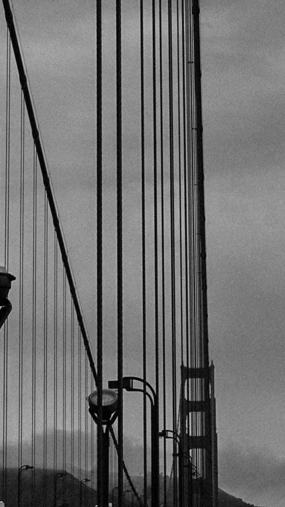 Le pont Golden Gate en noir et blanc aux États-Unis d'Amérique.