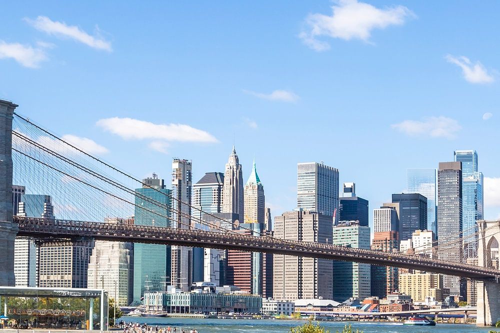 La vue sur le pont de Brooklyn et la ligne d'horizon de Lower Manhattan est un mélange époustouflant de nature et d'architecture urbaine. Le pont de Brooklyn s'étend élégamment au-dessus de l'East River, les façades en verre des gratte-ciel s'élèvent majestueusement vers le ciel et, au premier plan, une verdure luxuriante encadre la scène. Cette vue n'est pas seulement un plaisir visuel, elle offre aussi un moment de décélération.