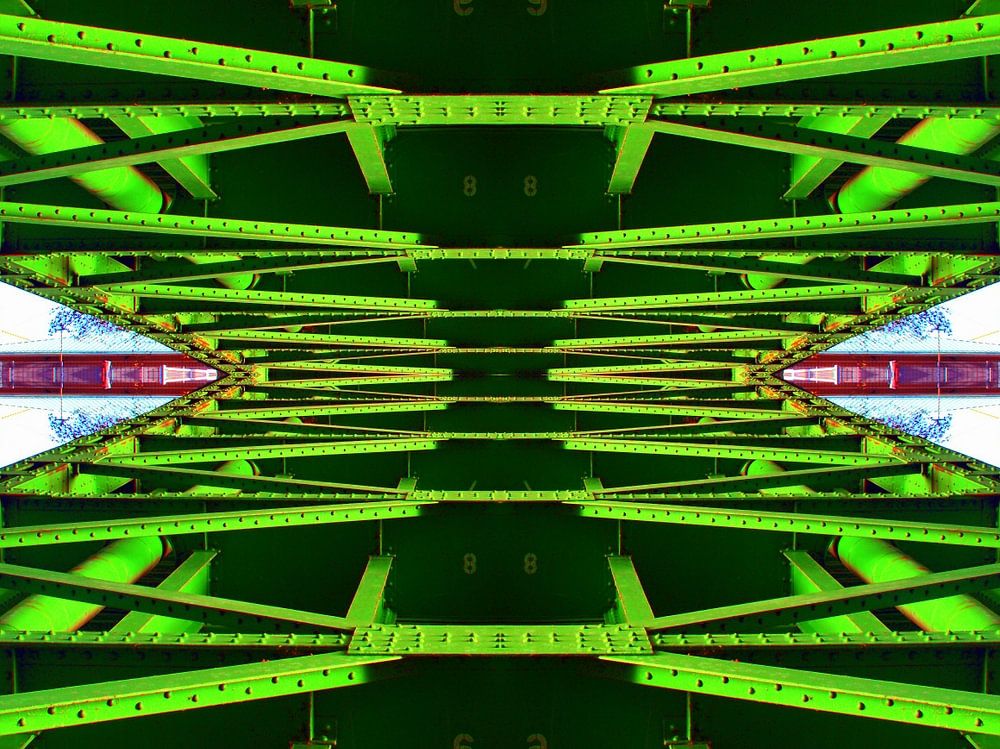 Reflet d'un pont vu d'en bas sur le canal Rhin-Herne