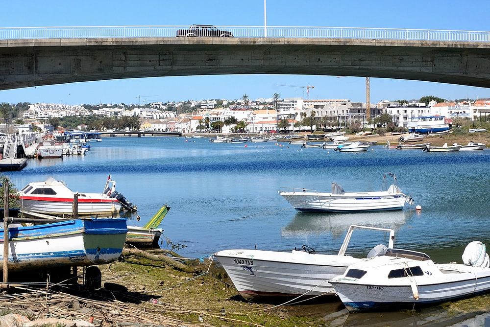 Le pont sur la rivière Gilao relie les deux parties de la ville portuaire de Tavira en Algarve, au Portugal.