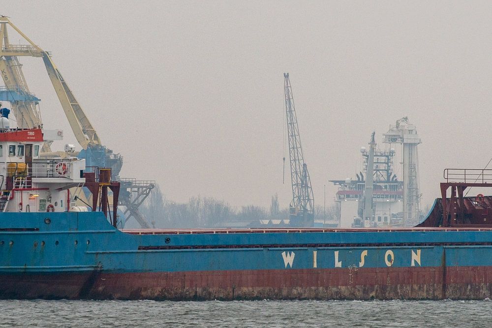 Dans l'effervescence du port d'Amsterdam, un caboteur prend la mer par une sombre journée d'hiver. L'eau de l'hélice s'agite vigoureusement derrière le navire, montrant que le pilote a de l'élan. Vide et léger, le caboteur a besoin de cette vitesse pour se diriger vers le vent. À l'arrière-plan, de grandes grues avec des grappins surplombent les quais, tandis que des barges vont et viennent. Le vent souffle sur l'eau, de petites vagues s'écrasent contre le rivage - le port est toujours en mouvement.