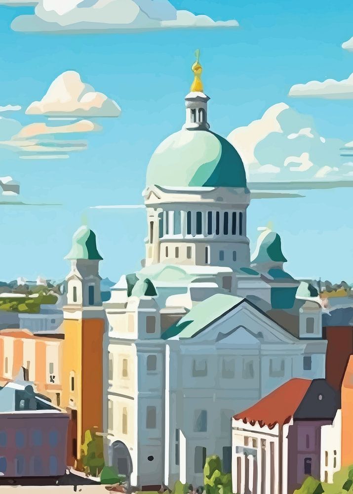 Une illustration captivante du charmant port d'Helsinki, avec l'emblématique cathédrale d'Helsinki. Cette affiche capture la beauté de la ville et de son environnement naturel époustouflant.