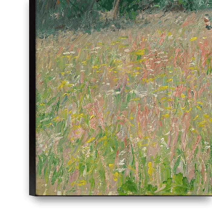 Le pré fleuri, Claude Monet (1885) Après s'être installé à Giverny en 1883, Claude Monet se consacre à l'environnement rural. Ici, il guide le regard du spectateur à travers les herbes hautes jusqu'aux enfants qui jouent. La prairie offre de nombreuses possibilités d'éveiller les sens. Le peintre rend les brins d'herbe tangibles pour le spectateur. L'herbe conserve la lumière et la chaleur de la journée de printemps et évoque l'odeur fraîche d'un paysage de prairie.