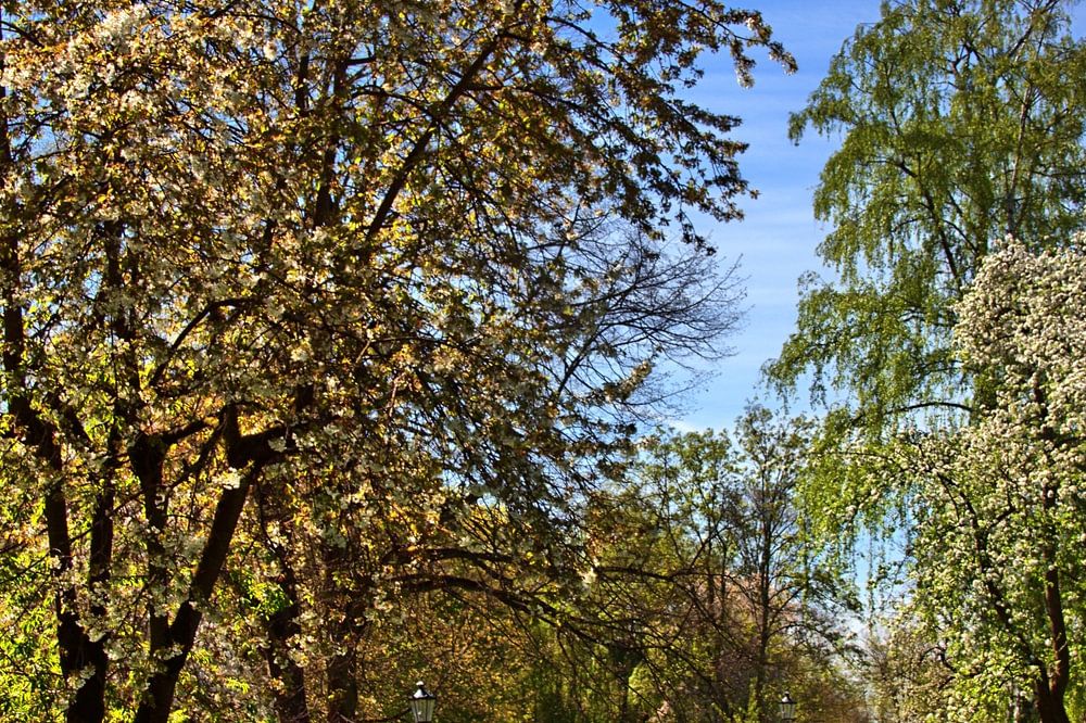 Arbres fruitiers en fleurs dans un parc de Düsseldorf-Kaiserwerth