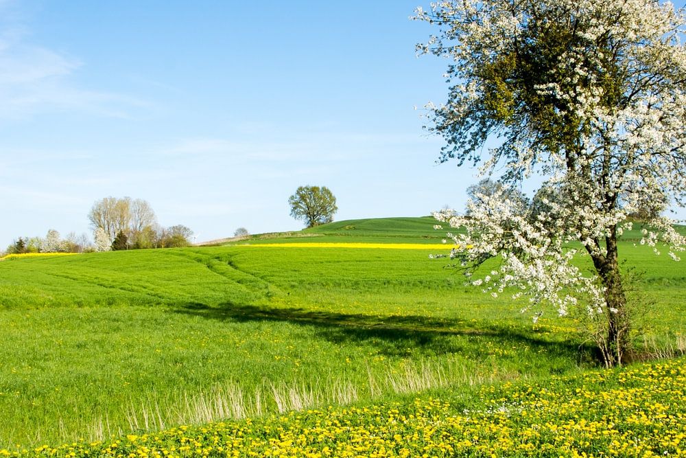Achetez cette œuvre d'art de paysage Le printemps avec un arbre en fleurs par ManfredFotos sur toile, aluminium, ArtFrame ou photographie (encadrée), impression d'art en haute qualité et tout format.