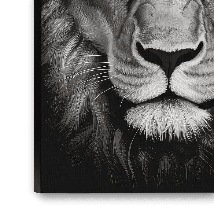 Achetez cette œuvre d'art moderne Le regard monochrome du lion majestueux par Art & Soul Creations sur toile, aluminium, ArtFrame ou photographie (encadrée), impression d'art en haute qualité et tout format.