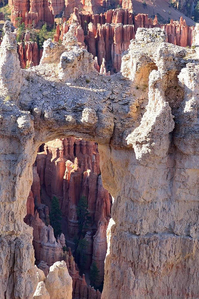 Le rocher avec le trou n'est qu'un des nombreux rochers que j'ai vus lors d'une randonnée sur le sentier Rim dans le parc national de Bryce Canyon, dans l'Utah, aux États-Unis. Celle-ci était un peu plus spéciale car les rochers étaient blancs et les détails étaient incroyables.