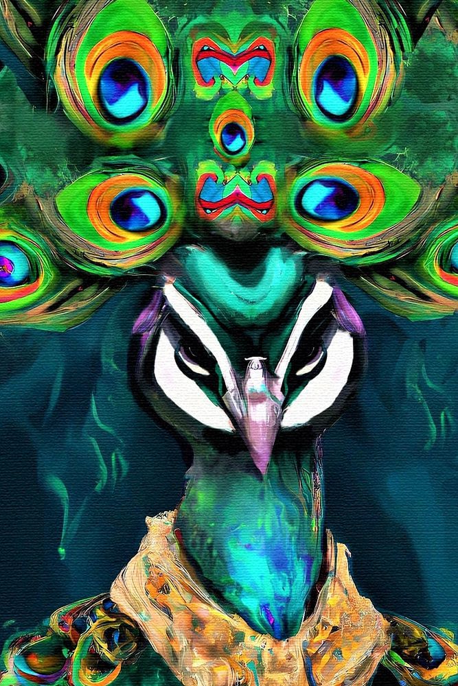 Portrait impressionnant d'un paon ressemblant à un roi élégant.