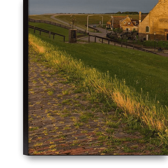 C'était un beau moment où le soleil brillait juste au-dessus de la digue. Par conséquent, les bâtiments du bas sont sombres et le reste est toujours ensoleillé.