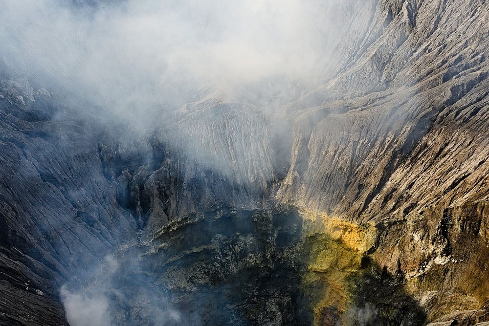Au cœur du parc national de Bromo Tengger Semeru, le cratère du mont Bromo révèle une puissance naturelle fascinante. Les parois abruptes, striées par le temps et les éruptions successives, plongent dans un gouffre d’où s’échappe une fumée dense et sulfureuse. En s’approchant du bord, on ressent la vibration de la terre, le souffle chaud du volcan et l’odeur piquante du soufre qui s’élève du fond du cratère.