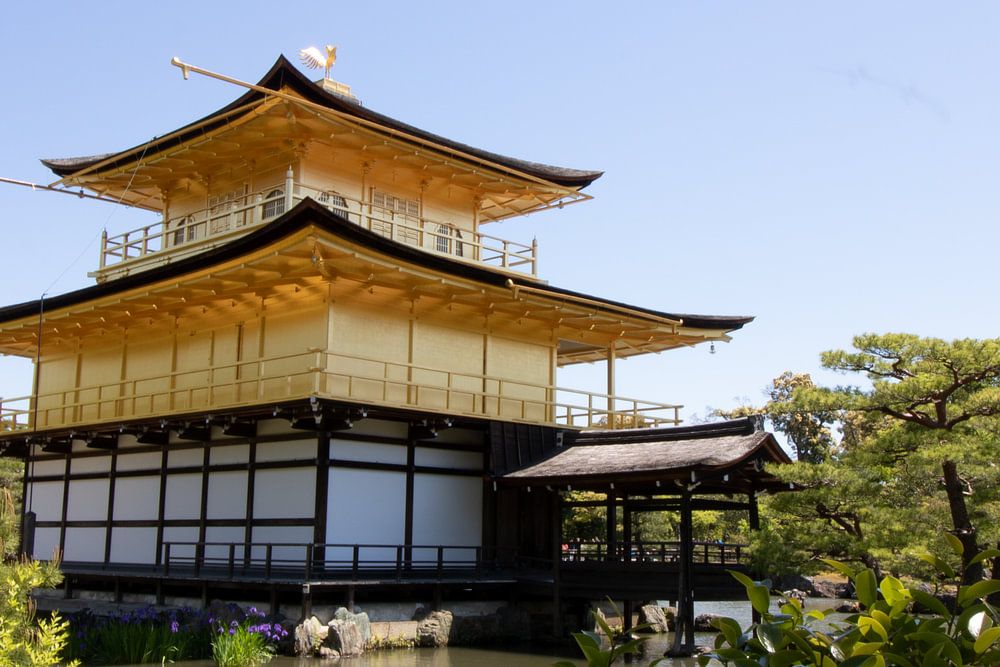 Le Temple d'or est un point de repère à Kyoto. Kyoto est l'une des principales villes du Japon qui mérite une visite. En cette belle journée de printemps, elle brille parmi toute la verdure.