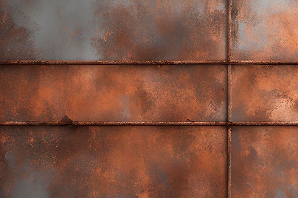 Cette image est une étude fascinante sur la structure, la dégradation et l'esthétique industrielle. Elle montre un grand mur métallique divisé par un motif en treillis caractéristique composé de montants horizontaux et verticaux. La surface raconte une histoire qui s'étend sur plusieurs décennies : la peinture grise écaillée laisse…