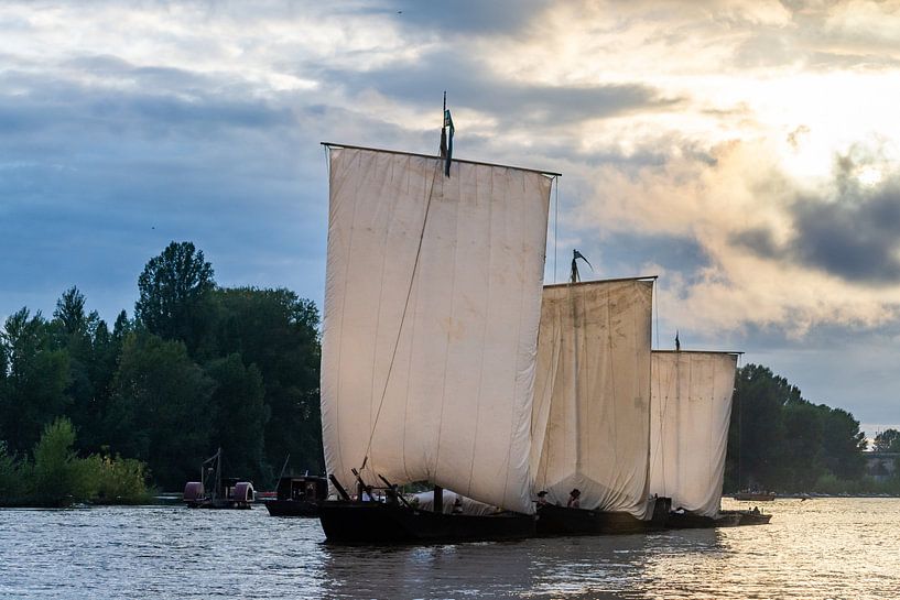 Chalands se déplaçant en train de bateaux pendant les Fêtes de la Loire à Orléans