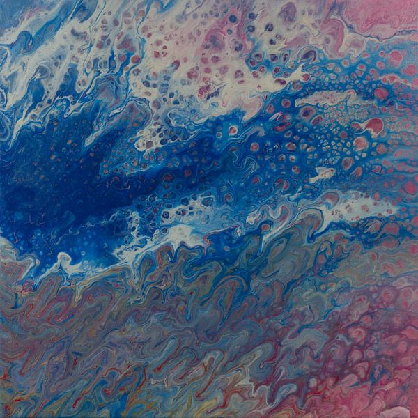 L’art fluide repose sur le hasard et l’abandon. L'artiste prépare, mélange, verse – mais dès que la peinture touche la toile, elle commence à vivre sa propre vie. Chaque couche révèle quelque chose de nouveau. Chaque recoin de la toile raconte une autre partie de l'histoire.