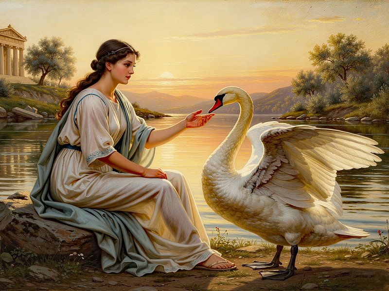 Die Legende von Leda und dem Schwan gehört zu den faszinierendsten und zugleich rätselhaftesten Erzählungen der griechischen Mythologie. Sie verbindet göttliche Macht, Verwandlung und die geheimnisvolle Grenze zwischen Mensch und Gott in einem einzigen, bildgewaltigen Moment. Der Mythos erzählt von Leda, der schönen Königin von Sparta, die eines Tages am Ufer eines Flusses einem außergewöhnlichen Schwan begegnet. Dieser Schwan ist in Wahrheit kein gewöhnliches Tier, sondern der Göttervater Zeus, der sich in dieser Gestalt Leda nähert. Die Begegnung ist von Ambivalenz geprägt – sie wird je nach Überlieferung als zärtlich, verführerisch oder auch als überwältigend geschildert. Aus dieser Verbindung gehen schließlich Kinder hervor, darunter die berühmte Helena, deren Schönheit später den Trojanischen Krieg auslösen sollte. Was diese Legende so besonders macht, ist ihre dichte Symbolik: Der Schwan steht für Anmut, Reinheit und zugleich für göttliche Macht, während Leda die menschliche Seite verkörpert – verletzlich, schön und in ein Schicksal verstrickt, das weit über sie hinausreicht. Die Geschichte berührt Themen wie Verwandlung, Verführung, Schicksal und die Nähe zwischen dem Irdischen und dem Göttlichen. Gerade deshalb eignet sich die Darstellung von Leda und dem Schwan hervorragend als Wandschmuck. Künstlerinnen und Künstler haben dieses Motiv über Jahrhunderte hinweg immer wieder neu interpretiert – von der Antike bis zur Renaissance und darüber hinaus. Die Szene bietet eine außergewöhnliche ästhetische Spannung: die geschwungenen Linien des Schwans, die weiche Darstellung der menschlichen Figur und die emotionale Intensität des Augenblicks verschmelzen zu einer kraftvollen Bildkomposition. Ein solches Bild zieht die Blicke auf sich, ohne aufdringlich zu wirken. Es vereint Eleganz und Tiefe, Mythos und Sinnlichkeit. Gleichzeitig lädt es zum Nachdenken ein – über die Geschichte selbst, ihre Bedeutung und die vielen Interpretationen, die sie im Laufe der Zeit erfahren hat. Als Wandschmuck ist es daher nicht nur dekorativ, sondern auch ein Gesprächsanlass und ein Ausdruck von kulturellem Interesse und künstlerischem Geschmack. So wird die Legende von Leda und dem Schwan zu mehr als nur einer alten Erzählung: Sie wird zu einem zeitlosen Kunstmotiv, das Räume bereichert und Geschichten erzählt, die bis heute nachwirken.