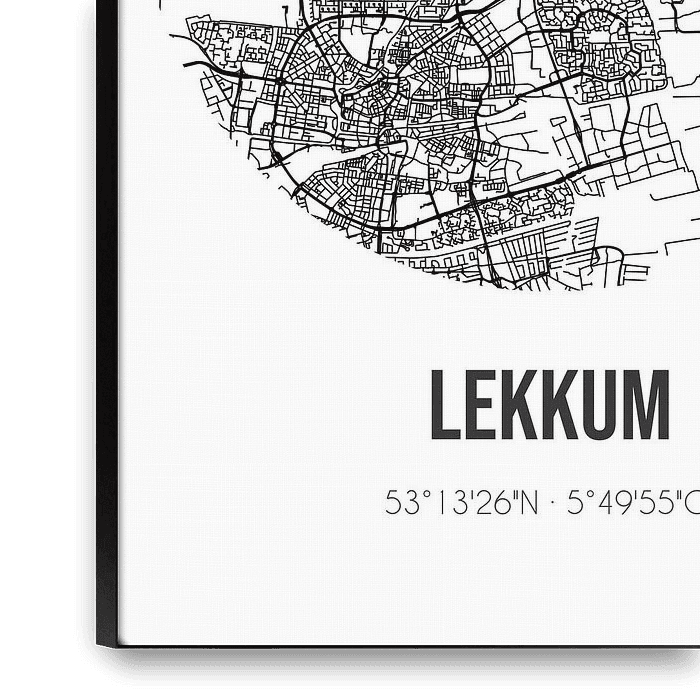 Achetez cette œuvre d'art abstraite Lekkum (Fryslan) | Carte | Noir et blanc par Affiches de lieux sur toile, aluminium, ArtFrame ou photographie (encadrée), impression d'art en haute qualité et tout format.