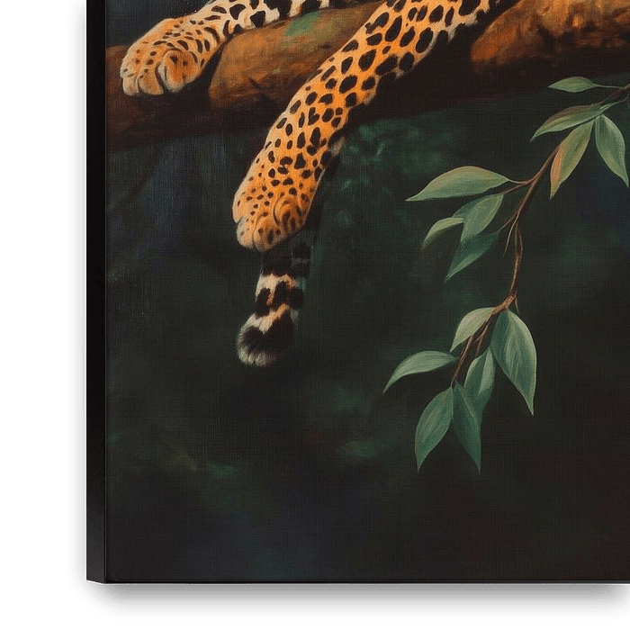 Dans le vert dense de la jungle, un léopard trône majestueusement sur une branche, son corps souple nonchalamment allongé. Les couleurs vives et panachées de son pelage forment un contraste impressionnant avec la douceur de l'étreinte des feuilles. Dans son élégance tranquille brille la sauvagerie de la nature, tandis qu'une étincelle…