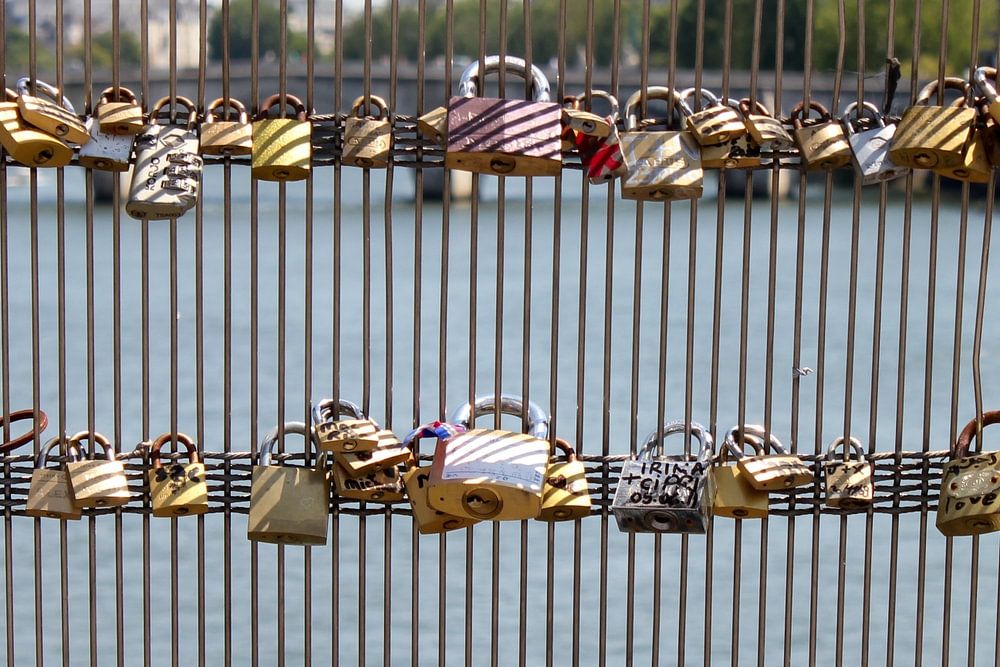 Serrures sur une clôture d'un pont sur la Seine à Paris.