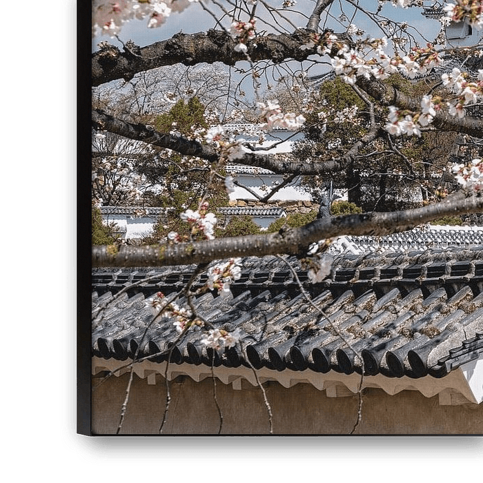 Achetez cette photo Les cerisiers en fleurs entourent un château majestueux par Heiko Meier sur toile, aluminium, ArtFrame ou photographie (encadrée), impression d'art en haute qualité et tout format.