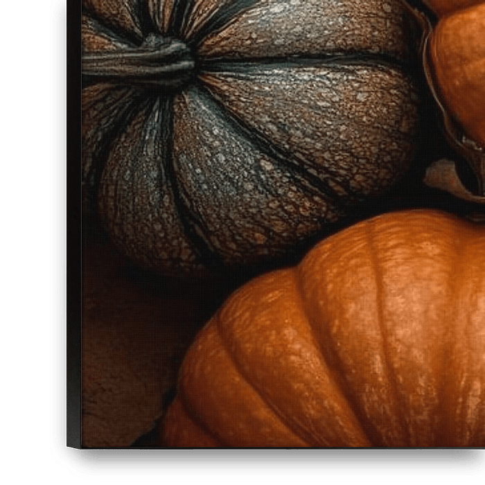 Dans un paradis automnal multicolore, différentes citrouilles se déploient - de l'orange vif au blanc éclatant en passant par le gris doux. Encadrées par des feuilles d'un brun éclatant, elles racontent les joies de la récolte et les soirées douillettes. La diversité des formes et des couleurs invite à profiter de la magie de la saison…