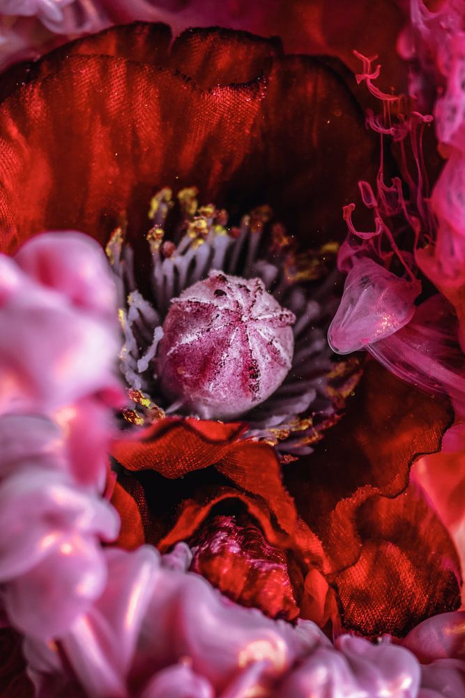 Fleur de pavot sous l'eau avec de la peinture acrylique