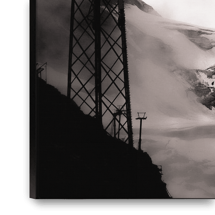 Voici les sommets enveloppés d'un blanc majestueux, Pourtant, ils sont reliés par des câbles, un spectacle moderne. Les pylônes électriques se profilent, robustes et hauts, Un symbole de progrès, un changement dans le rouge.