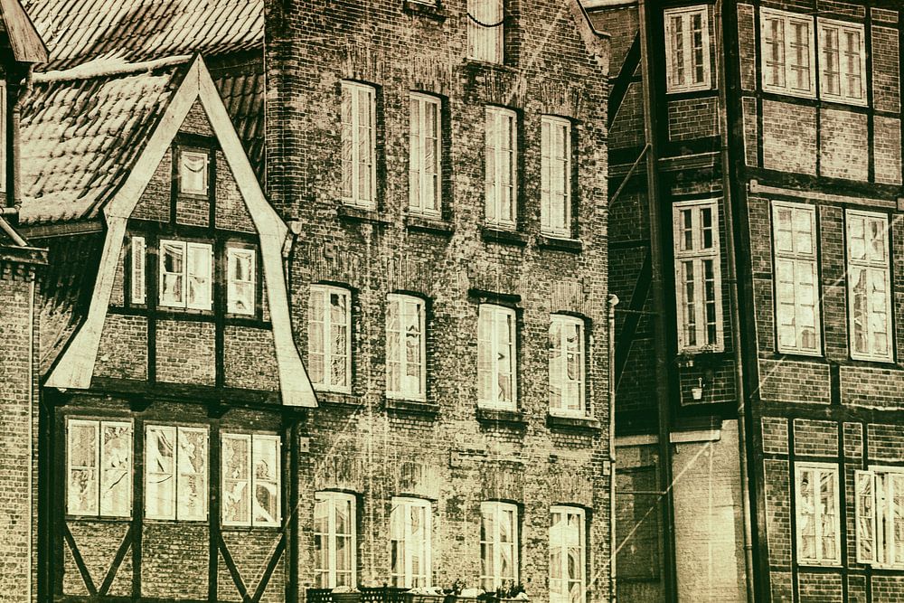 Gros plan sur les vieilles maisons de la Elbefleet à Hambourg. Conception artistique rétro.