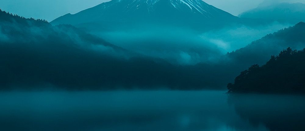 Un jeu mystique de douces nuances de bleu et de gris plonge l'observateur dans un paysage paisible, enveloppé de brume. La montagne majestueuse se reflète mystérieusement dans l'eau calme, et l'atmosphère respire le calme et la sérénité. Parfait pour la chambre à coucher, afin de créer une atmosphère relaxante et onirique.