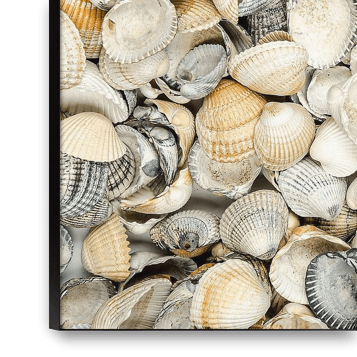 L'image montre une vaste collection de coquillages posés côte à côte sur une surface naturelle. Les coquillages se distinguent nettement par leur forme, leur taille et leur couleur, ce qui confère à l'image globale une texture variée et organique. Certains coquillages sont lisses et blancs, d'autres sont striés avec des nuances de gris,…
