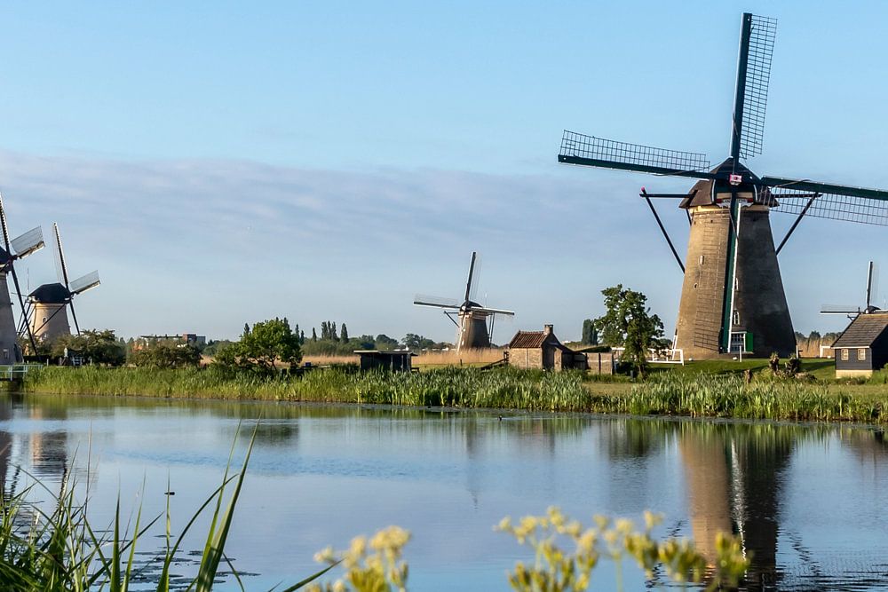 Les moulins à vent de Kinderdijk sont situés dans une belle région riche en eau. Dix-neuf magnifiques moulins, construits vers 1740, sont situés ici dans le cadre d'un système plus vaste de gestion de l'eau visant à prévenir les inondations. Aujourd'hui, ils sont un symbole de la gestion de l'eau aux Pays-Bas et en 1997, ils ont été déclarés patrimoine mondial de l'UNESCO.