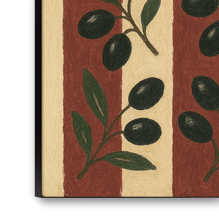 Dans cette œuvre d'art, la cire d'olive prend vie dans un mélange de couleurs et de nuances vintage, qui se marient magnifiquement et évoquent une atmosphère chaleureuse.
