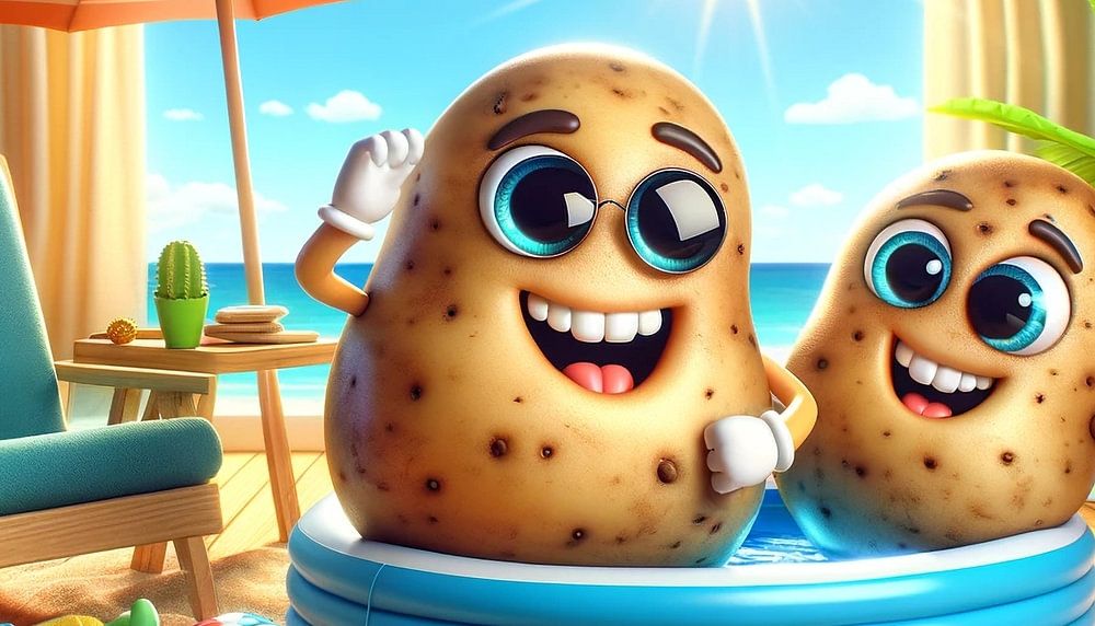 Équipés de lunettes de soleil et d'une petite piscine au centre, ces couch potatoes profitent des joies de l'été directement dans leur salon. Leur petite pataugeoire offre un rafraîchissement parfait, entourée d'accessoires estivaux comme un ballon de plage et des jouets de sable. Malgré l'environnement domestique, ils se sentent comme à la plage, aidés par la lumière du jour éclatante qui entre par la grande fenêtre. Une boisson fraîche à la main et un ciel d'un bleu éclatant, visible à travers la vitre, renforcent ce sentiment estival. Cette scène est une ode à la joie et à l'ingéniosité de célébrer l'été à la maison.