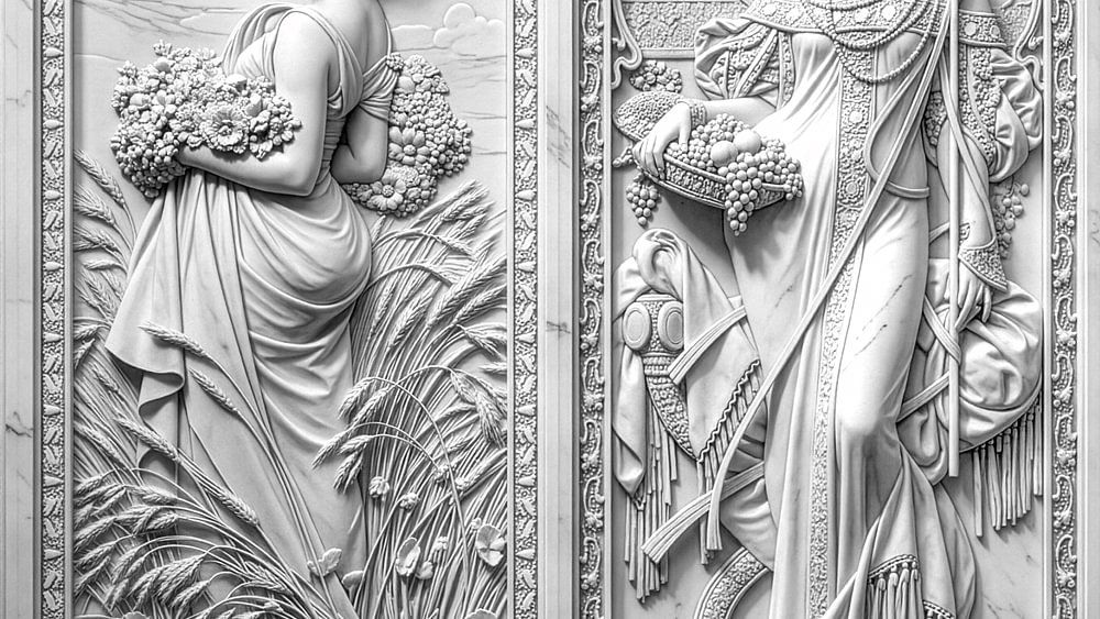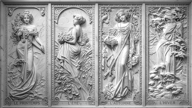 Acheter ce art numérique Les saisons Alphonse Mucha par Frank Lavooij sur toile, aluminium, ArtFrame ou photographie (encadrée), impression d'art en haute définition et tout type de format.