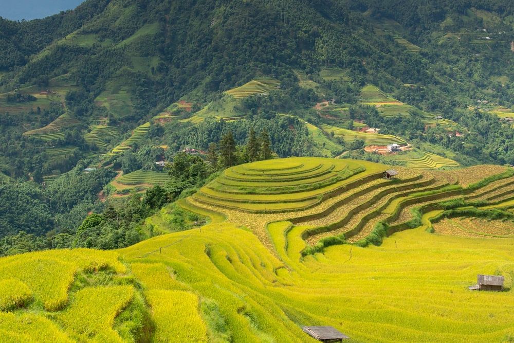 Selon la saison, les champs passent du vert frais au printemps au jaune doré au moment de la récolte. La brume qui s'étend entre les collines au petit matin confère au paysage une atmosphère presque magique. Cette région isolée respire la tranquillité et offre un aperçu authentique de la vie agricole traditionnelle au Viêt Nam.