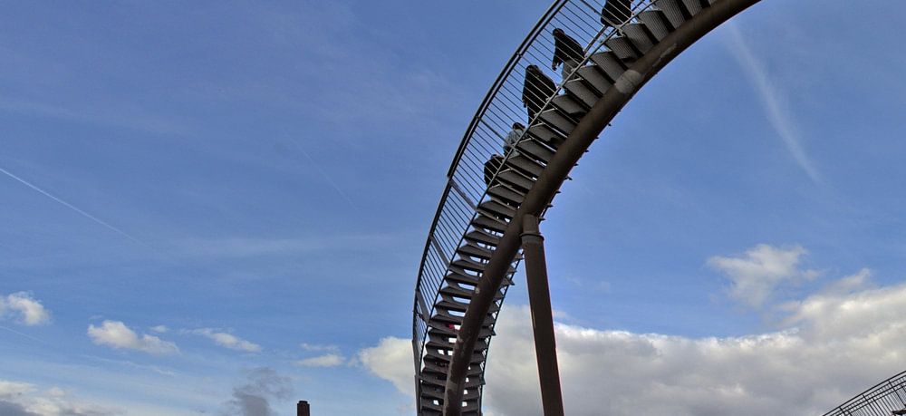 La montagne magique Tiger and Turtle à Duisburg et les tours de refroidissement et l'industrie en arrière-plan