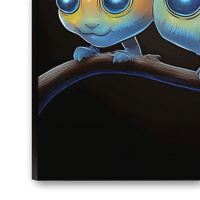 Sur une mystérieuse branche flottant dans le vide, ces trois créatures lumineuses vivent à la croisée de l'imagination et du miracle cosmique. Chaque être rayonne d'énergie bioluminescente, leurs couronnes hérissées d'épines et leurs yeux immenses captent la beauté de l'innocence extraterrestre.